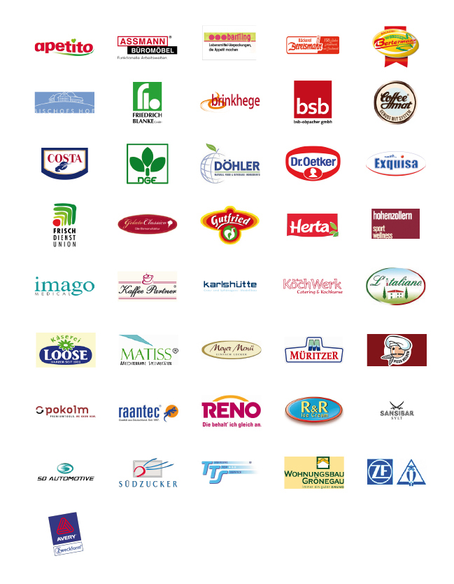 - Fleischkrone - FDU - Frost & Frisch - Gelha - Gutfried - Kaffee Partner - Kaeserei Loose - Koerber Medipack -