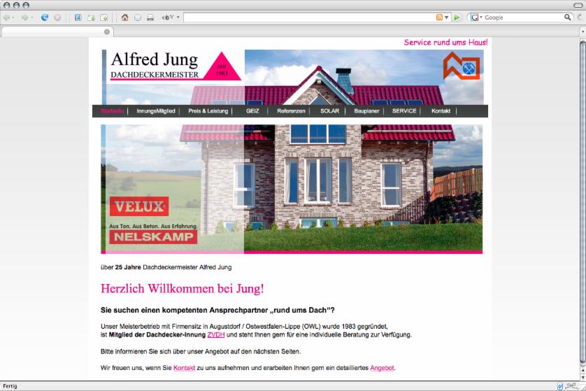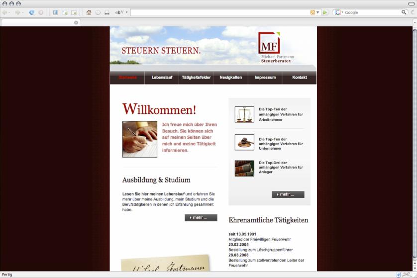 (fuer das CMS, das Hosting, die .de-Domain und die Email-Adressen fallen monatliche 1und1-Provider-Gebuehren von rund 10,-- *