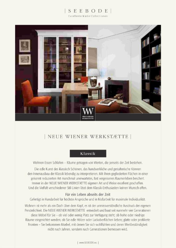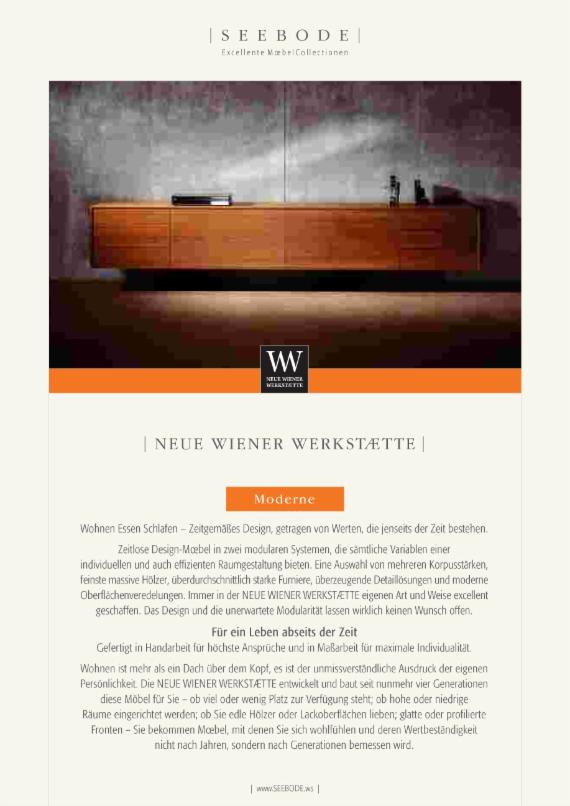 Nach dem das CI/CD entwickelt war, wurden auf dieser Basis 7 edle Produktblätter für 3 Moebelsparten